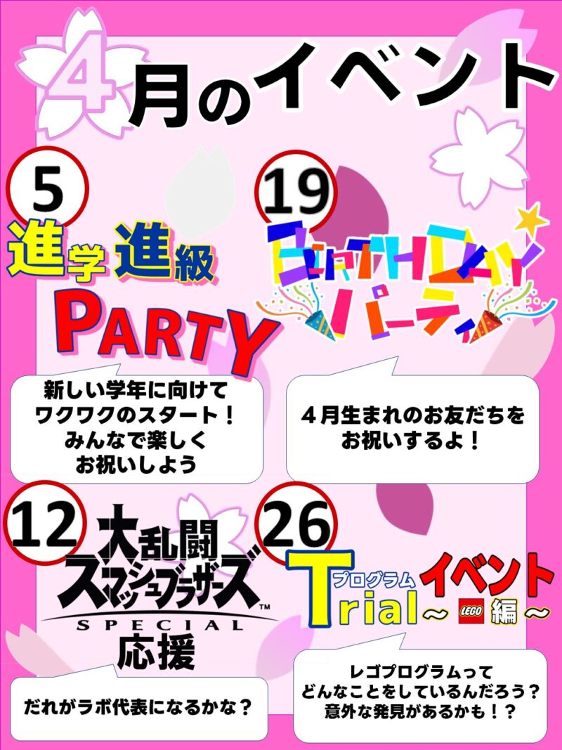 ※おやつ代、イベント代は別途徴収させて頂きます